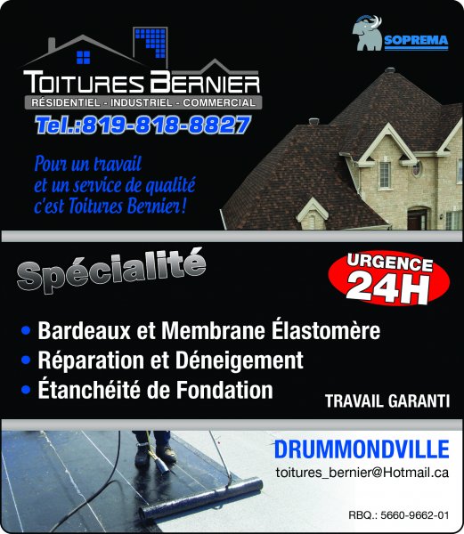 Couvreur de métier depuis plusieurs années, Toitures Bernier se fera un plaisir de vous servir avec courtoisie.