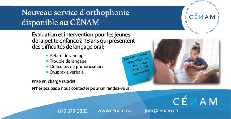Founded in 2006, Le Centre d’évaluation neuropsychologique des apprentissages de la Mauricie (CÉNAM) provides professional expertise for children and teenagers.