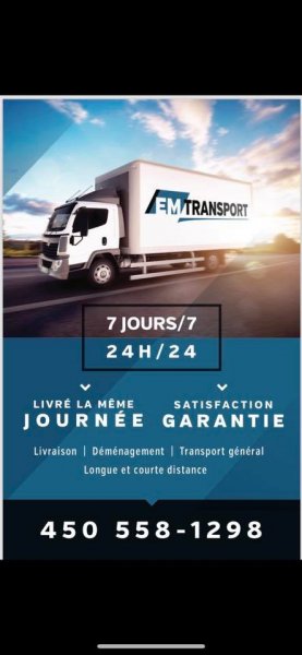 EM-Transport is a transport company that proposes its transport services in Estrie and on the South-Shore of Montreal. With more than 2 years of experience in this area, these professionals propose high-quality services at the best price.