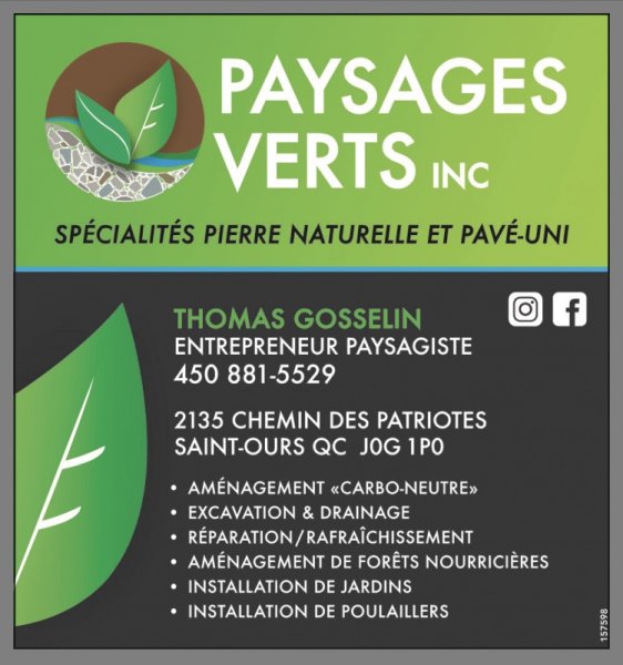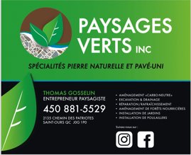 Paysages Verts Inc. is a sustainable landscaping company specialized natural stones installation and paving on the south shore of Montreal. With many years of experience, this company proposes a lot of service in excavation, drainage and landscaping areas.