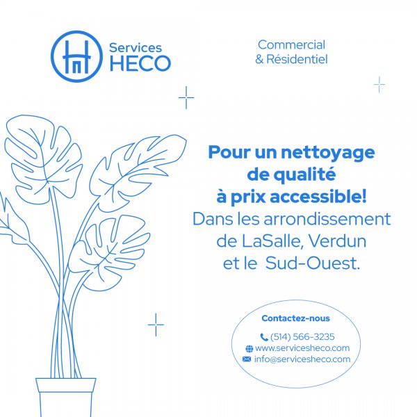 Established in Montreal for several years, Service HECO is a family business offering housekeeping services to professionals as well as individuals in the boroughs of LaSalle, Verdun and Sud-Ouest. Specialized in regular housekeeping, the professionals of this company carry out precise, meticulous and efficient work. Very attentive to the needs and requirements of their customers, they offer a 20-minute visit (completely free and without obligation) in order to be sure to offer you personalized service adapted to your requests.
