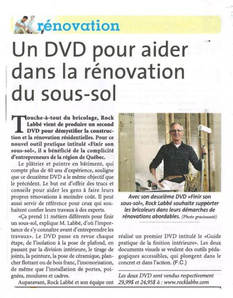 Rock Labbé is a renovation coach with more than 50 years of experience as a sealer and in the field of interior finishing. He offers his services to help you in your renovation work and has also created two DVDs explaining the different steps to achieve quality work.