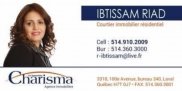 Residential real estate broker for several years, Ibtissam Riad is the real estate broker you need to carry out all of your real estate projects in Montreal and its surroundings. You want to sell...