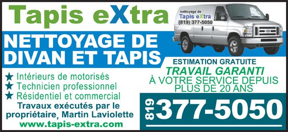 Nettoyage de Tapis Extra est une entreprise qui se spécialise dans le nettoyage de tapis et de meubles en tissus. Depuis plus de 25 ans, ces experts vous offrent leurs services dans la Mauricie.