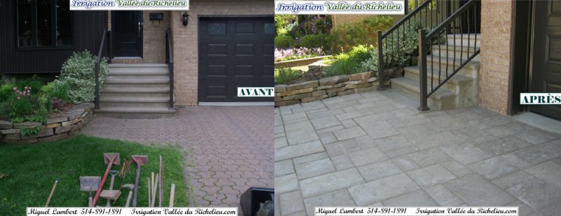 - Muret de soutenement, pavé-uni, asphalte