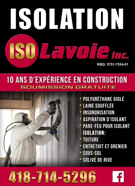 Contactez Iso lavoie Inc. pour toutes demandes de renseignements ou de soumissions!